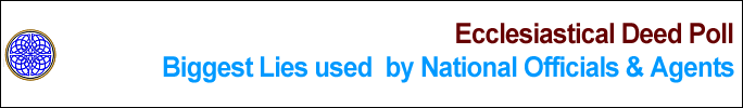 The Biggest Lies used by National Officials and Agents to ignore Ecclesiastical Deeds are desperate, unlawful, corrupt and criminal methods employed by these officials and others in their attempt to ignore the absolute fact that before Heaven and Earth they have been served Divine Notice through one or more Ecclesiastical Deeds because of their unwillingness to honor basic rights bestowed to all men, women and children by the Divine since being born. |